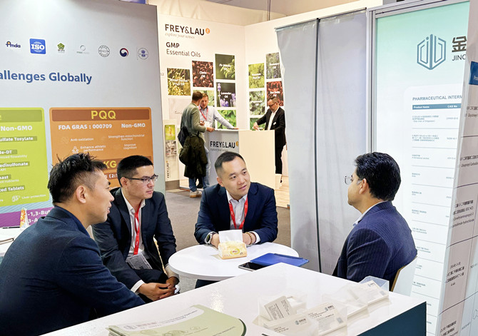 所在位置:首页 - 新闻中心10月28—30日,备受瞩目的世界制药原料展览会(CPhI Frankfurt 2025),美国国际天然、健康和创新原料展览会(Supply Side Global)分别在德国法兰克福和美国拉斯维加斯举行。金城医药销售、研发、BD、供应链团队深度参与国际“双展”会,与国际客户、行业伙伴广泛交流,共同探讨医药产业创新发展路径。