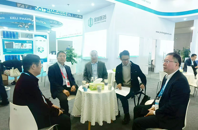 所在位置:首页 - 新闻中心11月12日,第93届中国国际医药原料药/中间体/包装/设备交易会(API China)在重庆国际博览中心开幕。金城医药集团总裁李家全、总工程师郑庚修带领销售、研发、采购、BD等团队参展。